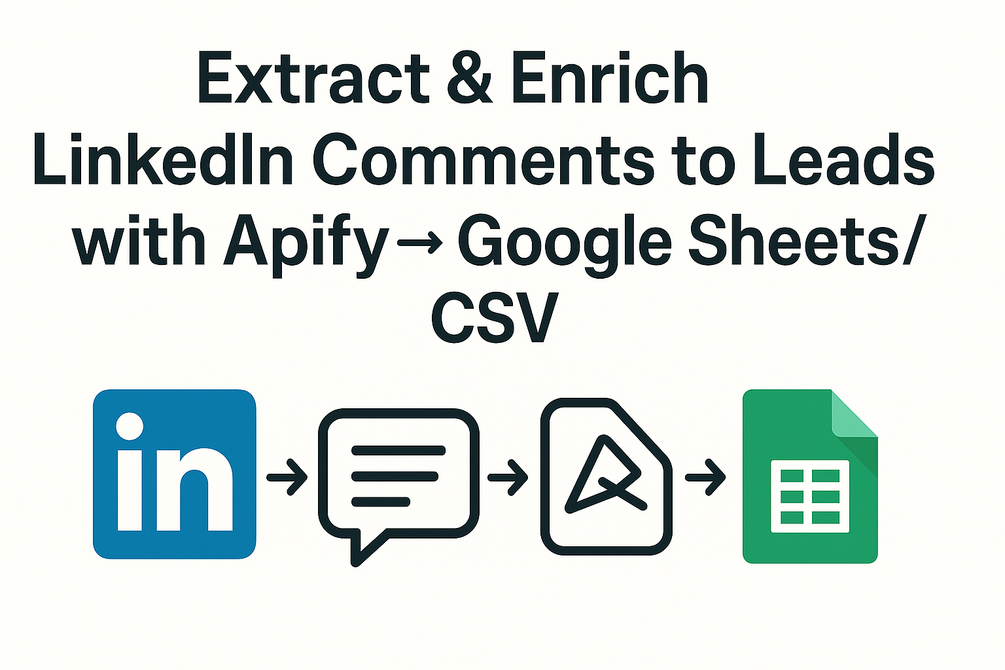 Turn engagement into leads. This n8n workflow scrapes comments from any LinkedIn post using Apify, enriches each profile with relevant details, and exports the structured data to Google Sheets or CSV.